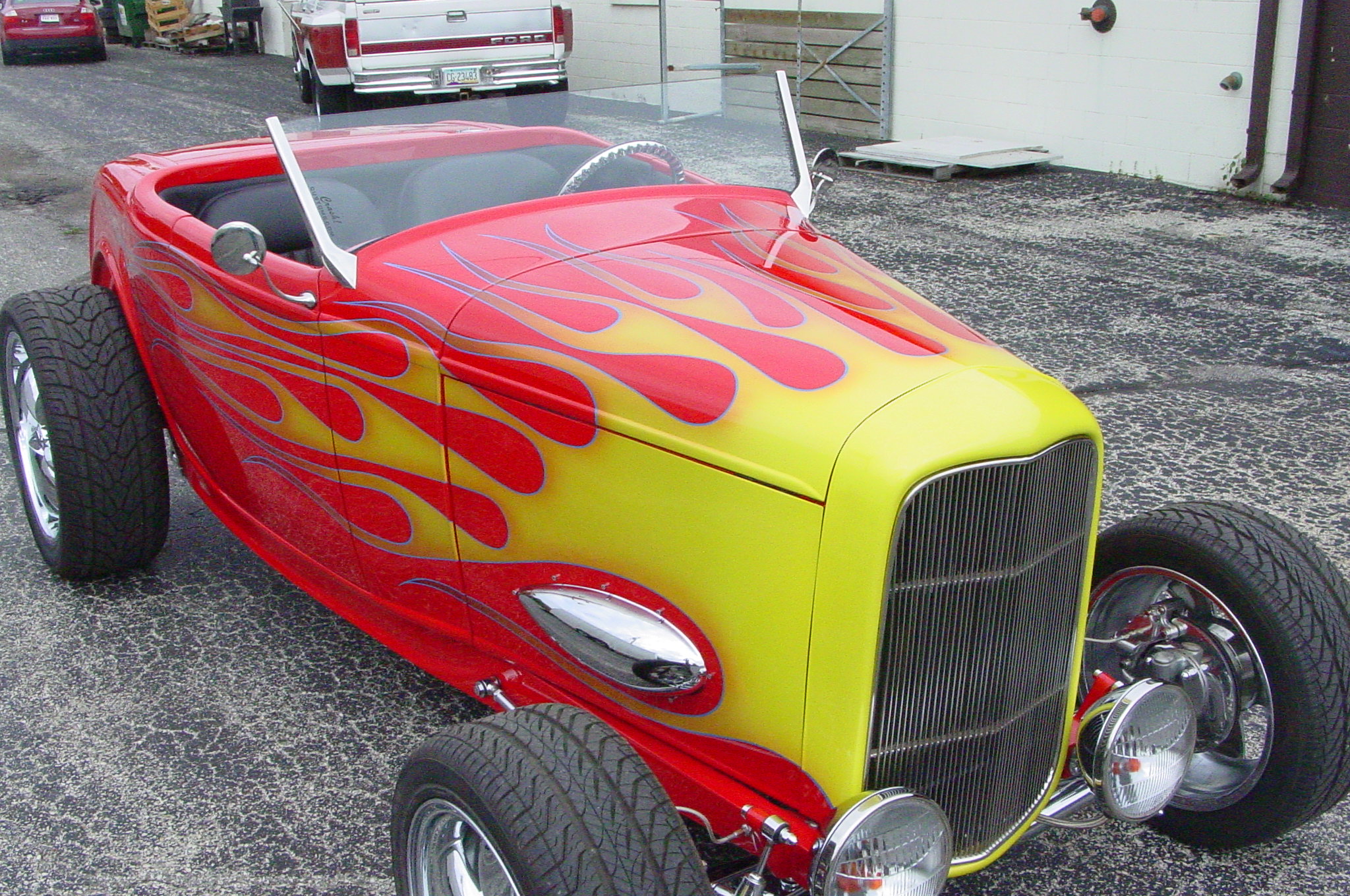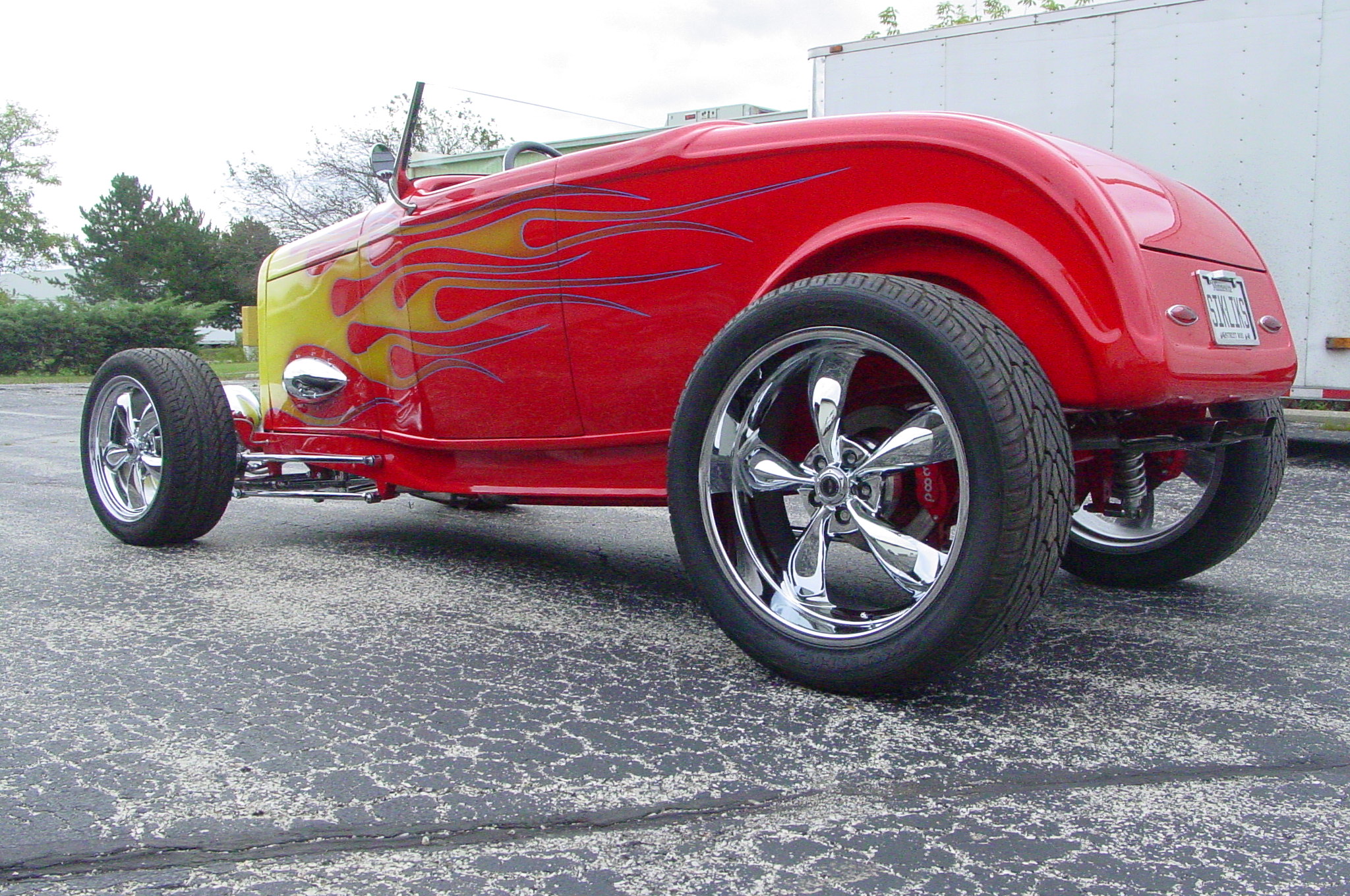 - Body Mods: Rolled rear pan, steel hood, chrome speed blisters in hood sides, reworked cowl to fit windshield